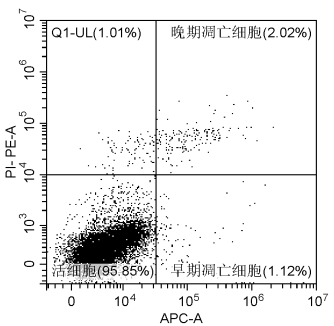 凋亡中晚期的細胞和死細胞的細胞膜通透性增加,PI能夠透過細胞膜而使細胞核染紅。因此將Annexin V與PI匹配使用,可以將處于不同凋亡時期的細胞區分開來。